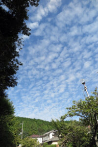 長かった猛暑もやっと開けてくれるのであろうか、青空にうろこ雲(巻積雲)らしき雲がまんだら山の上をゆっくりと東へ動いていた。