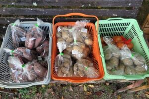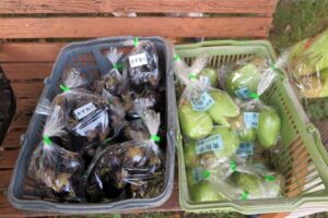 300円:サツマイモ(紅はるか・鳴門金時)11袋、トウガン4個