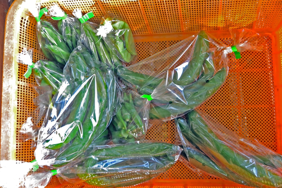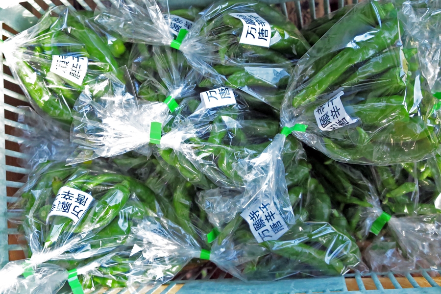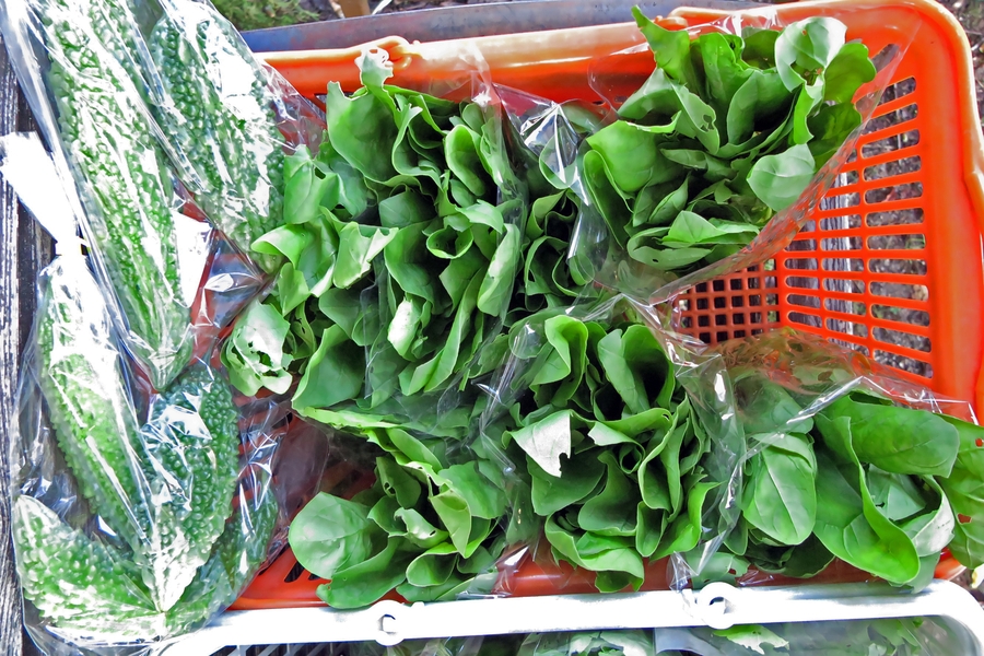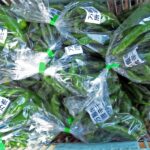 100円:ほうれん草8袋、万願寺20袋、ナス24袋、ネギ22袋、キュウリ10袋、ピーマン13袋、オクラ3袋、、ゴーヤ3個、大根葉5袋、トウガラシ9個、豆5袋