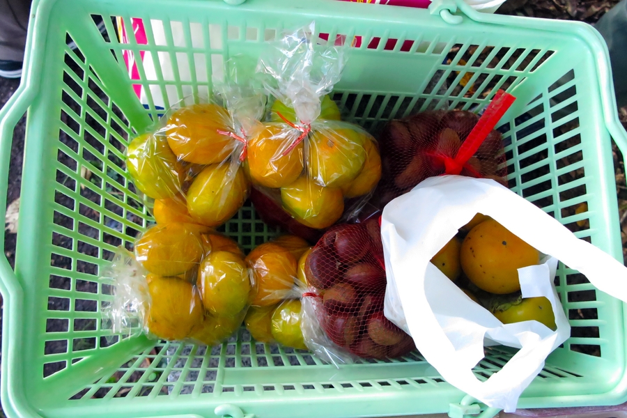 200円:ジャガイモ8袋、柿10袋、みかん4袋