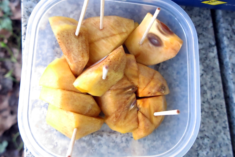 栗や柿が存在感を漂わせている。試食用の柿を口にした人は誰もが「美味しい」とうなずく。