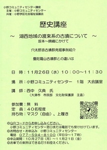 今年度は、歴史講座『湖西地域の渡来系の古墳について』坂本~錦