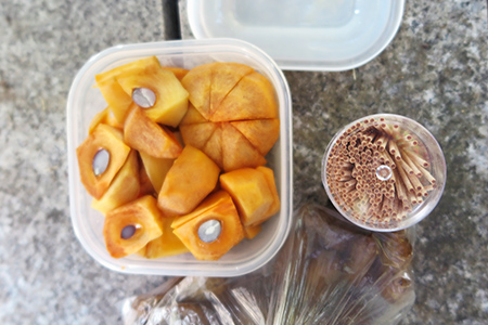 200円:ジャガイモ17袋、柿10袋、みかん5袋、ピーナッツ20袋、坊ちゃんカボチャ1個