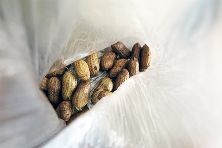 栗の姿が消えた。新顔はピーナッ。T氏がその塩ゆでしたものを試食用にサービス。「イケる!」「おいしい!」の声とともに20袋のピーナッツは求められて行った。みかん、柿も早く完売。全体にたくさんの方にお越しいただき、売れ行きも順調であった。