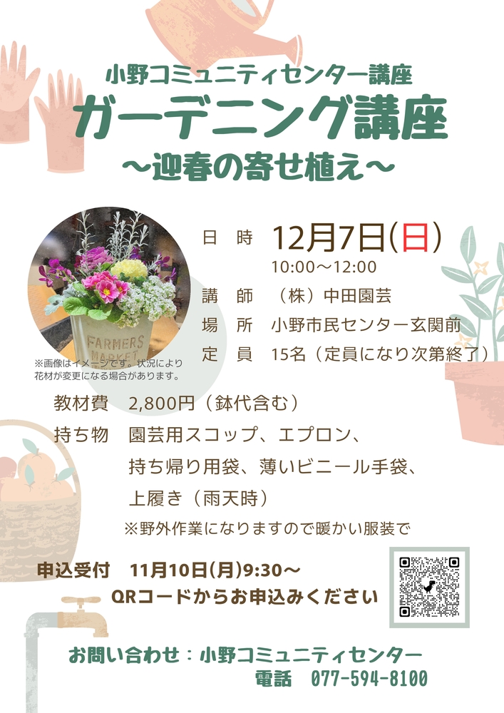 • 「ガーデニング講座 ~迎春の寄せ植え~」のご案内
