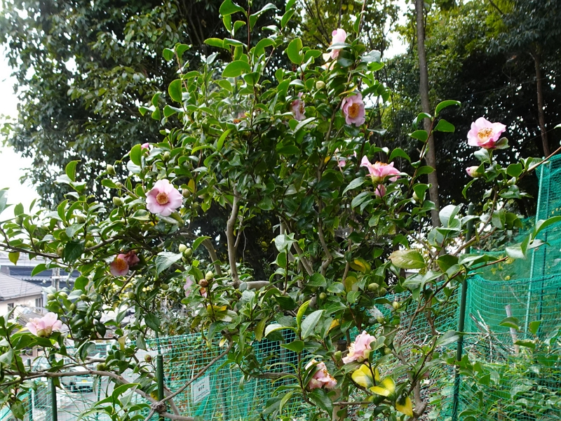 つらつら椿外苑の椿の根元付近にホトトギスが咲いています(写真左から01)、集会所前の皇帝ダリアの蕾が膨らんで来ました(02)、容子.Yさんの和水仙が順調に育っています(03)、Mrs.Kyutokuさんの柏葉紫陽花はその後は鹿の食害を受けていないようです(04)、西方尼寺桂子椿(05)・ハルサザンカ笑顔(06)もたくさんの蕾を付けています、炉開きも可憐に咲いています(07)、小野乃春野(08)は満開状態です。