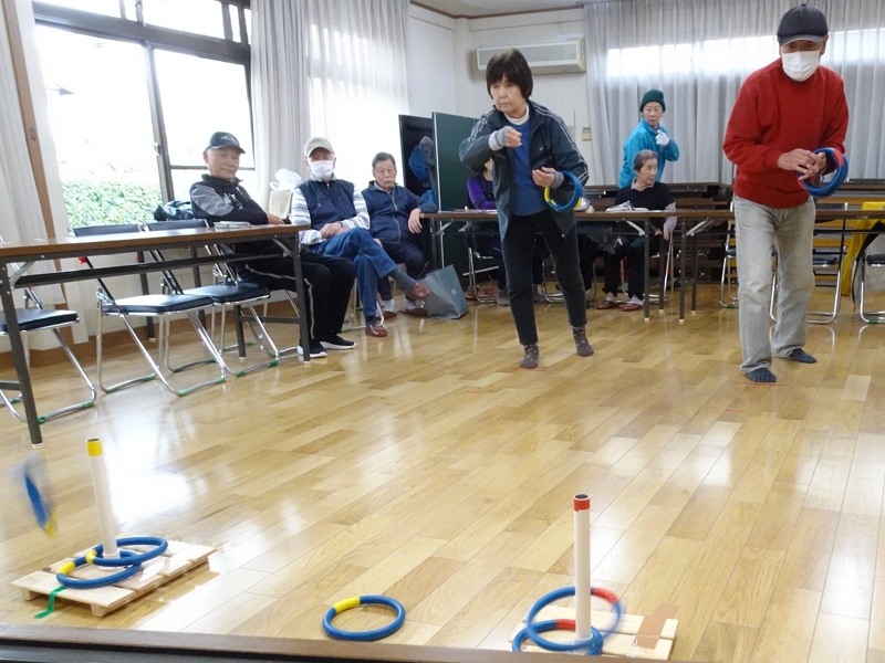11月11日(第2火曜日)朝日二丁目集会所で、輪投げ練習会とぶらっとサロン(健康麻雀ミーティング)が、午後1時半より開催されました。