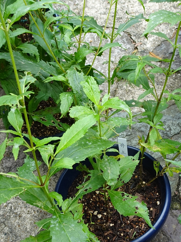 その後も、猛暑が続き、源氏藤袴会さんでは、日々の水やりに加え、日よけ(覆い)の設置、大型扇風機の使用、さらには藤袴の大敵であるバッタの大量発生による鉢の移動などにご尽力いただきました。