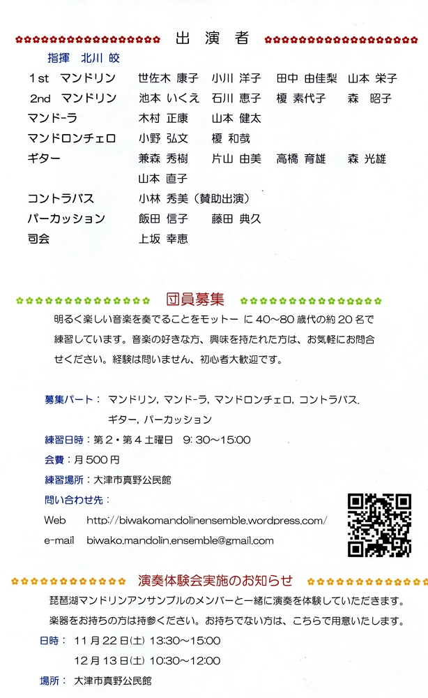 琵琶湖マンドリンアンサンブル「第10回定期演奏会」開催