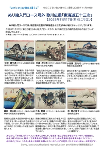 今回は、11月17日(第3月曜日)のぬり絵入門コースで、あけ