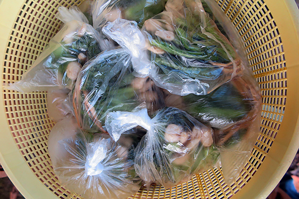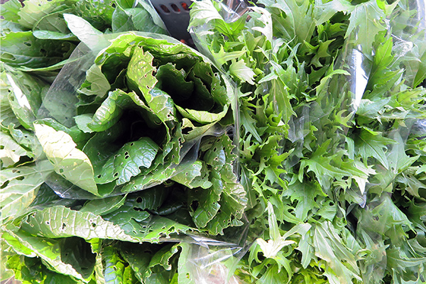 100円:大根9本、春菊4袋、水菜7袋、チンゲンサイ6袋、ネギ20袋、ほうれん草4袋、廿日大根2、近江かぶら12袋、銀杏4袋、漬物21袋、小松菜5袋