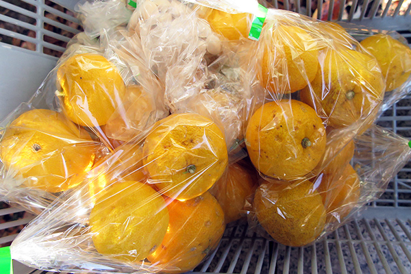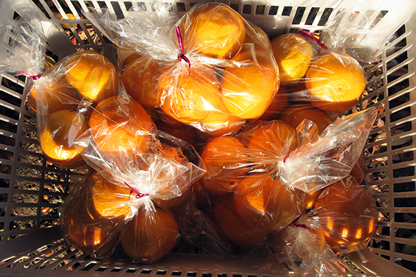 200円:みかん15袋、ゆず6袋、柿10袋、ジャガイモ5袋