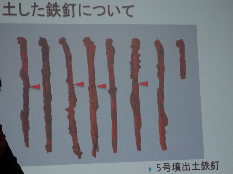・鉄釘が各古墳より出土。特に1~6号墳では原位置を保つものとみられる。これらより木棺の規模等が復元できる可能性がある。