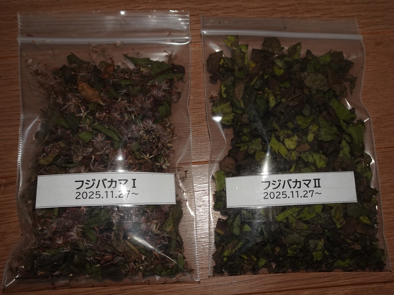フジバカマⅡを裁断中に、ミント系或いは柑橘系の香りをほのかに感じました。フジバカマⅠには感じない香りです。(11月28日現在)